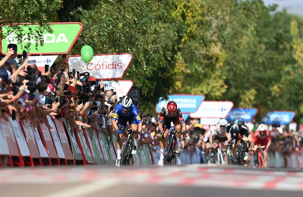 Hai tốp của đoàn đua Trong 4km cuối, toàn đội Deceuninck-QuickStep tràn đội hình lên đầu để tạo ưu thế cho Fabio Jakobsen. Thế nhưng, do thấm mệt sau hành trình hơn 200km và trước lực kéo quá mạnh của đồng đội, Fabio Jakobsen đã bị ngợp. Tay đua Hà Lan chủ động lùi lại khi chỉ còn 1,5km là đến đích.