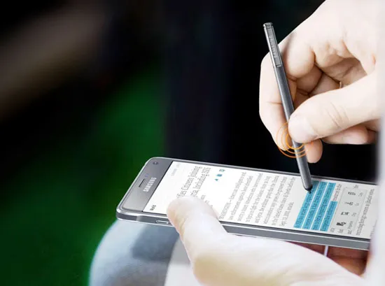 Samsung đã mang lại nhiều cải tiến cho S Pen, tạo cảm giác viết thoải mái, tự nhiên và quen thuộc hơn. Bút S Pen được nâng độ nhạy lên gấp 2 lần so với thế hệ trước, cho nét bút mượt mà, tự nhiên và chân thật như viết trên giấy thật- nét thanh, nét đậm tùy ý. Thậm chí bạn có thể dùng S Pen như chuột máy tính- khi kéo chọn nhiều tập tin hoặc đánh dấu văn bản dễ dàng. Trong khi đó, Chọn lựa thông minh (Smart Select) giúp bạn thoải mái ghi chú, sao chép, hay ghép chung các phần nội dung từ nhiều nguồn khác nhau và chia sẻ dễ dàng. Ngoài việc gõ chữ và viết, hay thu âm lại nội dung, tính năng Snap Note cũng hỗ trợ việc chụp lại nội dung gồm hình ảnh và chữ viết, rồi chuyển sang nhiều định dạng khác nhau để biên tập lại và lưu trữ.