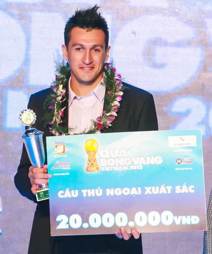 Tiền đạo Gaston Merlo trong lần nhận danh hiệu Cầu thủ ngoại xuất sắc lần 3. Ảnh: Hoàng Hùng