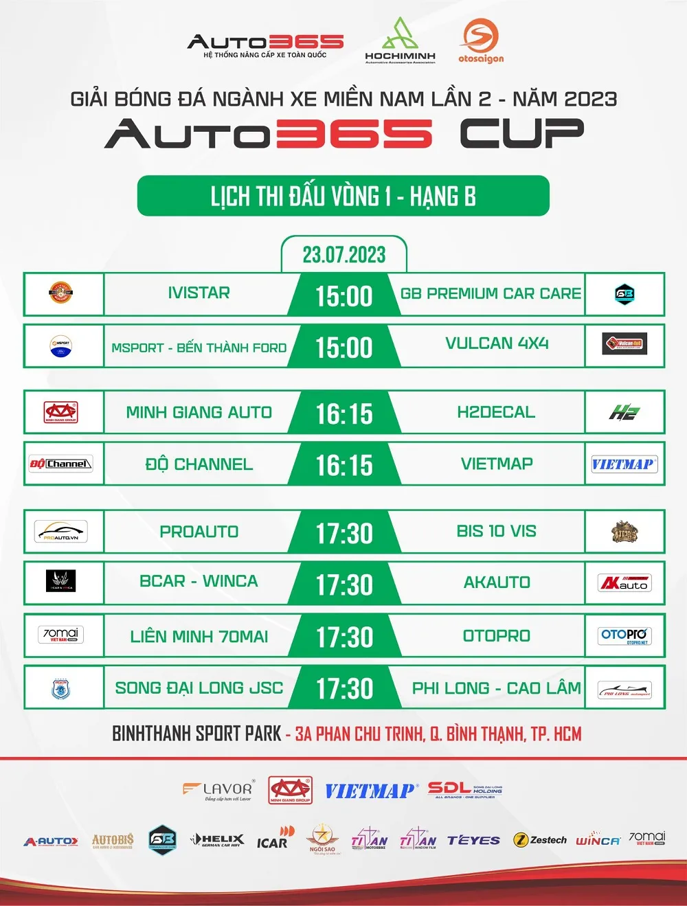 Giải bóng đá ngành xe miền Nam lần 2 Auto365 Cup lần 2 năm 2023 do Hiệp hội phụ kiện Ôtô TPHCM phối hợp cùng PhuiFootball tổ chức từ ngày 23/7 đến ngày 13/8 tại sân bóng Bình Thạnh Sport Park (Quận Bình Thạnh, TPHCM). Toàn bộ các trận đấu sẽ được trực tiếp trên PhuiFootball.