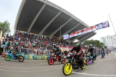 Cuộc đua Suzuki Raider diễn ra trên sân vận động Quân khu 5 trở nên hấp dẫn hơn bao giờ hết khi các tay đua phải thi đấu lượt bán kết và chung kết dưới cơn mưa khá lớn. Đã chuẩn bị trước, các tay đua đã thay những chiếc bánh xe chuyên dụng thi đấu dưới mưa.