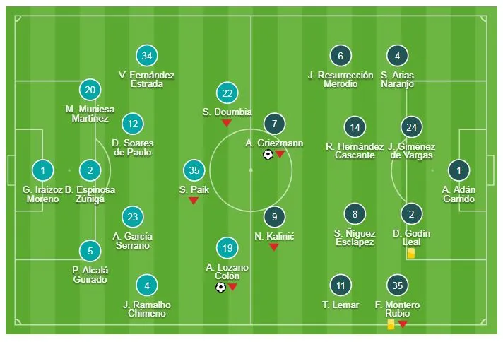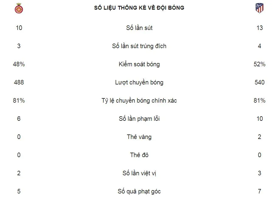 Tưởng Atletico Madrid sẽ dễ dàng vượt qua Girona nhưng đội bóng của HLV Diego Simeone bất ngờ bị cầm hòa 1-1. Sau 9 phút ngôi sao Griezmann đưa Atletico Madrid vượt lên và Lozano có bàn thắng gỡ hòa 1-1.