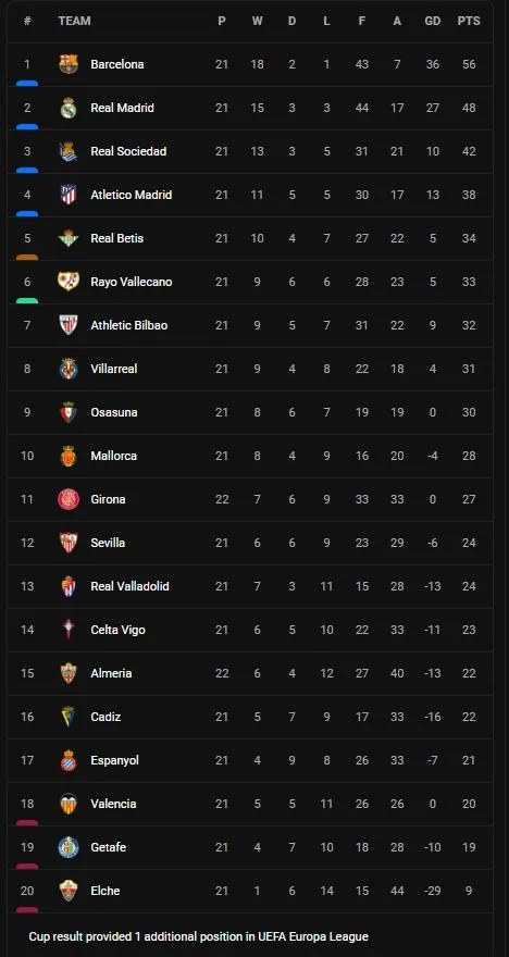 Girona: Castellanos 8', Tsyhankov 34', Riquelme 36', Hernandez 43', Martin 77', Christian Stuani 79'