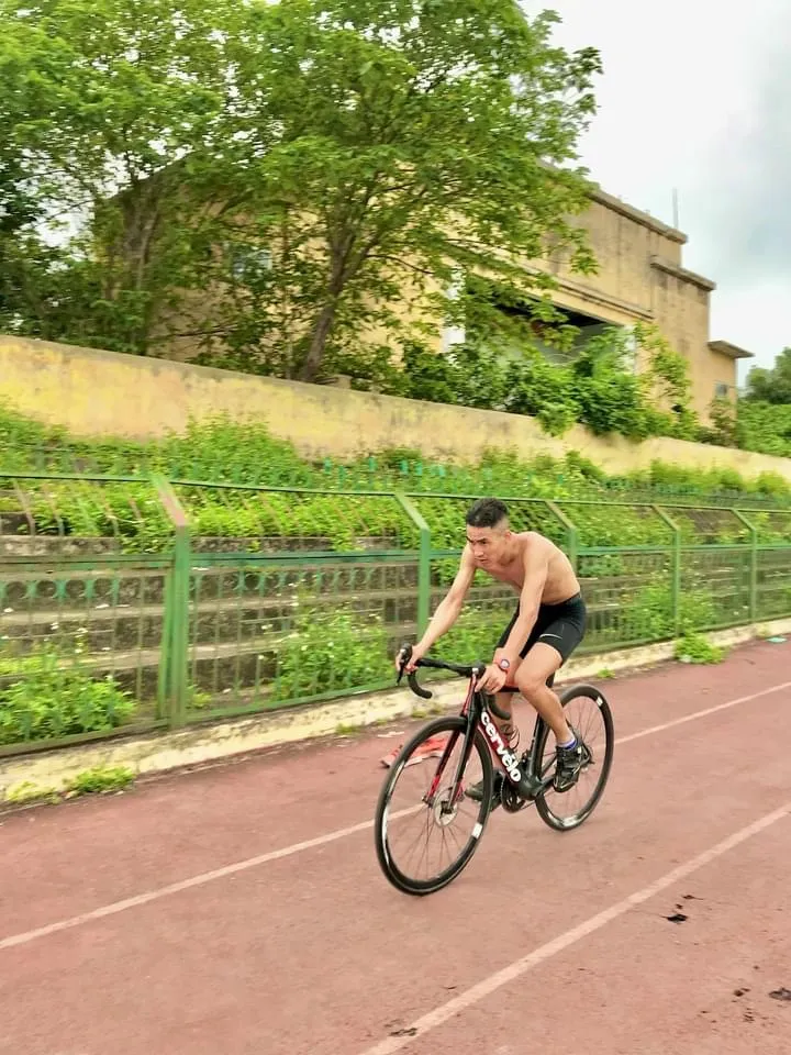 Do tự tập nên VĐV không có nhiều dụng cụ tập bổ trợ. Tiến Sản cho biết hàng ngày tự bổ trợ bằng 3 tiếng rèn thể lực, giữ múi cơ qua các bài bật tại chỗ, chạy bộ. "Bình thường tôi chạy mỗi sáng từ 18 tới 20km, sau đó tới bài đạp xe cùng quãng đường trên. Từng thời điểm, khối lượng của tôi thay đổi cho phù hợp. Ảnh hưởng của Covid-19 và việc giãn cách đã thực hiện tại địa phương nên bài chạy và đạp xe của tôi đang điều chỉnh phù hợp hơn", VĐV này xác nhận.