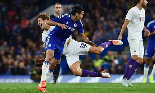 Radamel Falcao (phải, Chelsea) mờ nhạt trước hàng thủ Fiorentina.