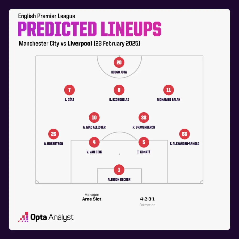 Slot cũng vượt qua bài kiểm tra Pep đầu tiên. Vào ngày 1/12, trong lần đầu gặp Man City của Guardiola, Liverpool đã thắng với tỷ số 2-0, một kết quả được xem là còn may mắn với Man City. Trận đấu đó diễn ra tại Anfield, và vào Chủ nhật, họ sẽ đối mặt với một đội Man City đã thay đổi khá nhiều.