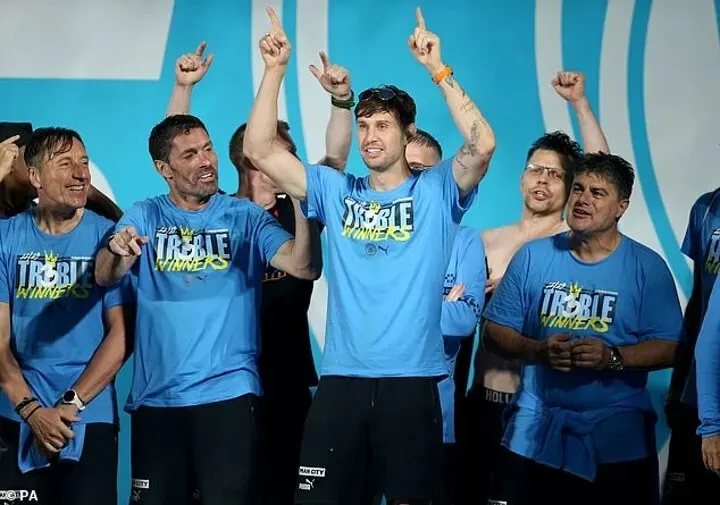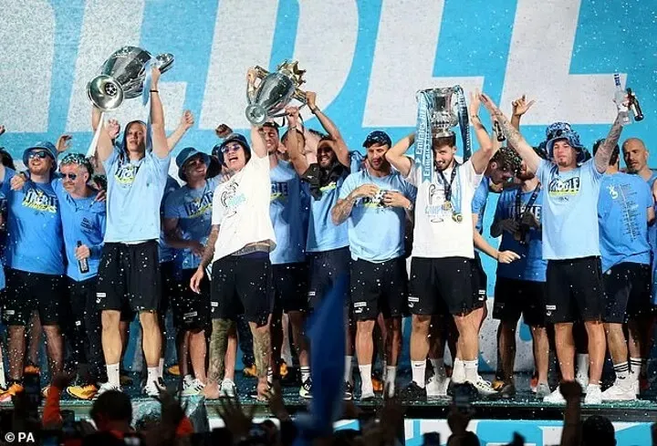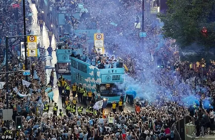 Chiều qua, dưới cơn mưa lớn ở Manchester, Sky Blues đã thực hiện lễ diễu hành mừng chiến thắng với sự hiện diện của hơn 100.000 CĐV chen chúc quanh quảng trường St Peter và những con đường xung quanh. Cả đội đã về đến sân bay Manchester vào chiều Chủ nhật, sau khi nhảy từ máy bay riêng này sang máy bay riêng khác và đi thẳng đến Ibiza.
