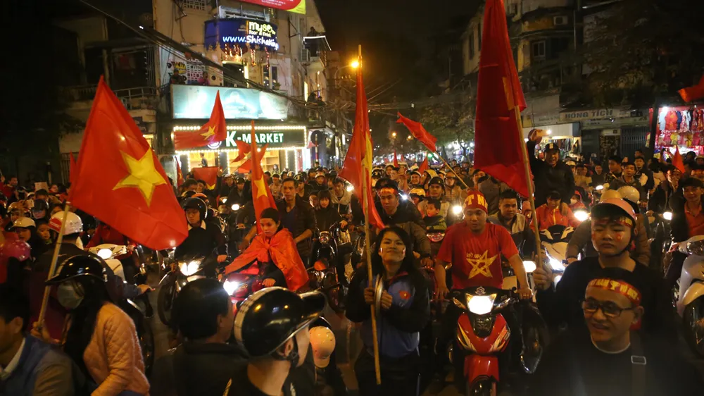 Ghi nhận của PV Báo SGGP trên nhiều tuyến phố của Hà Nội như ngã tư Cửa Nam, Hai Bà Trưng, Hàng Bài, Bà Triệu, Điện Biên Phủ, Hùng Vương đông nghịt người và xe trong rừng cờ đỏ sao vàng, lẫn tiếng hô vang “Việt Nam chiến thắng”, “Việt Nam vô địch”.