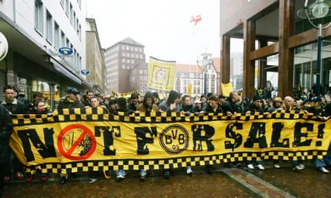 Người hâm mộ biểu tình tại Friedensplatz ở Dortmund trước trận đấu của BVB với Bochum vào tháng 2 năm 2005. Ảnh: Friedemann Vogel/Bongarts/Getty Images