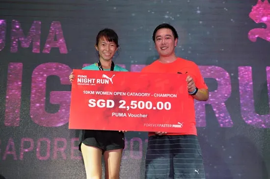 Trong lễ trao giải cho những người thắng cuộc, ông Gabriel Yap, Giám đốc Marketing Puma Đông Nam Á, đánh giá: Running là bộ môn được Puma đặc biệt quan tâm dưới một nền tảng hoàn toàn mới, Forever Faster. Chúng tôi đem Puma Night Run đến Singapore cho toàn bộ những người yêu thích bộ môn chạy bộ và thật sự phấn khởi khi thấy nhiều người tham gia chạy bộ đón thử thách bằng sự tự tin và quyết tâm, về đích với nụ cười sảng khoái trên gương mặt.