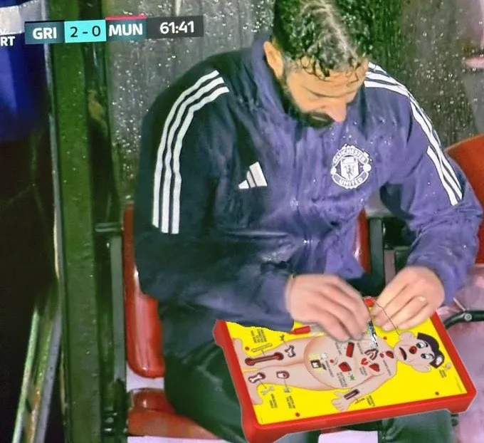 Amorim tham khảo bảng chiến thuật trong khu kỹ thuật trong trận đấu vòng hai Cúp liên đoàn với Grimsby. Vâng, đây là đáy sâu. Một lần nữa. Những cầu thủ mới, những người được kỳ vọng mang lại sự phấn khích, đang nghĩ gì? Tệ hơn nữa, cả ba người đều ra sân trong một đội hình mạnh. Hai người trở thành phần quan trọng của câu chuyện, khi Benjamin Sesko thực hiện quả phạt đền muộn – quả thứ 10 trong loạt sút luân lưu – và Bryan Mbuemo sút hỏng quả quyết định.