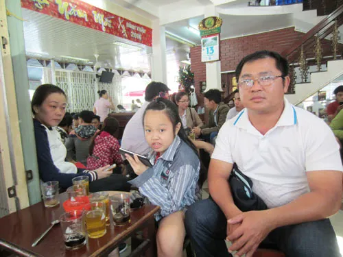 HLV Thiện cùng vợ con uống cà phê trong ngày tết ở Đà Nẵng. Ảnh: H.Hưng
