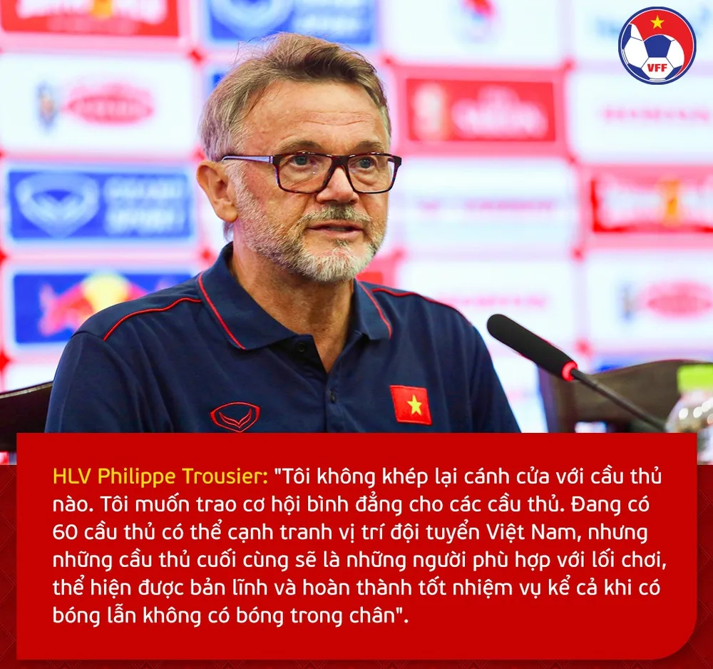 “Chúng tôi đang trong quá trình hướng tới vòng loại World Cup 2026, diễn ra từ tháng 11 tới. Với cương vị HLV trưởng cả đội tuyển Việt Nam và U23 Việt Nam, tôi có ưu thế để làm việc, quan sát số lượng lớn cầu thủ. Tôi đã có 6 tháng làm việc cùng bóng đá Việt Nam ở hai cấp độ đội tuyển quốc gia và đội tuyển U23. Tôi vẫn đang trong quá trình xây dựng và thiện đội hình. Với trải nghiệm ở Nhật Bản cùng quãng thời gian huấn luyện U23 Việt Nam, tôi hiểu rằng cầu thủ càng trẻ càng linh hoạt thì thích nghi với cái mới nhanh hơn”, HLV Philippe Trousier khẳng định.