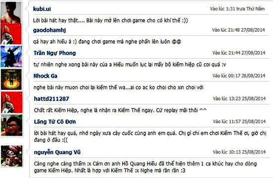Đặc biệt, sau khi thấy Hồ Quang Hiếu đăng tải trên fanpage và facebook cá nhân, cộng đồng mạng lại càng tò mò và ngạc nhiên hỏi “Hồ Quang Hiếu cũng chơi Kiếm Thế à?”. Đã có hàng chục ngàn lượt yêu thích, chia sẻ và bình luận tích cực về bài hát này. Chỉ cần thoáng qua, người nghe có thể cảm nhận hầu hết những ca từ trong bài hát đều gắn liền với Kiếm Thế như Tiêu Dao Cốc, Phục Ngưu Sơn, Anh Hùng Kiếm Hội, Tần Lăng Kim Giáp, anh hùng, hồng nhan, gió sương, giấc mộng thời trai, …