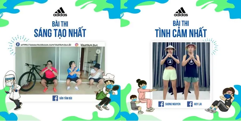 Điểm lại những bài dự thi ấn tượng nhất của "Vận động truyền Động viên". Để cổ vũ tinh thần cho người tham dự các bài "Vận động truyền Động viên", adidas đã dành tặng những phần quà hấp dẫn là voucher ưu đãi khi mua hàng trị giá từ 300.000đ - 1.500.000VNĐ. Ngoài ra còn có 2 phần quà đặc biệt là 2 đôi giày chạy bộ adidas 4DFWD dành cho 1 nam và 1 nữ may mắn nhất. Chi tiết chương trình mời tìm hiểu thêm tại đây: https://www.facebook.com/adidasVN/posts/4382372701801469