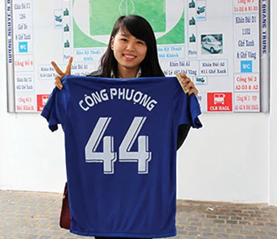 Fan nữ rạng rở với áo đấu của Công Phượng. Ảnh: TƯ LIỆU