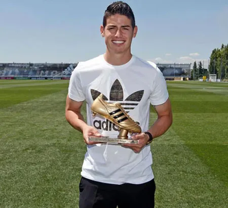 (SGGPO).- Hôm nay, 9-8, đại diện của FIFA và hãng thể thao nổi tiếng Adidas tổ chức buổi lễ đặc biệt tại Valdebebas - đại bản doanh của Real Madrid để trao danh hiệu Vua phá lưới cho ngôi sao người Colombia - James Rodriguez.
