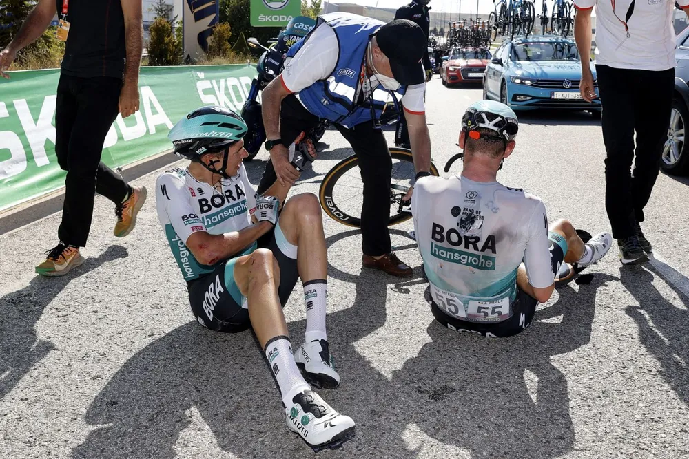 Tiếp đó là cuộc tranh giành không khoan nhượng giữa các đội mạnh để giúp “gà” của mình tìm vị trí thuận lợi tung nước rút thắng chặng. Nhưng khi cách đích 4,3km, một tai nạn liên hoàn đã xảy ra, trong đó có những tay đua mạnh như Adam Yates (Ineos Grenadiers), Jack Haig (Bahrain Victorious) và Hugh Carthy (EF Education – Nippo). May mắn là họ đều có thể trở lại thi đấu nhưng vì tai nạn ngoài 3km cuối nên họ đã thua thêm áo đỏ Primoz Roglic hơn 30 giây.