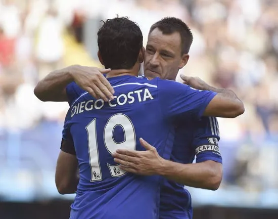 Tân binh Diego Costa (trái) bày tỏ tôn trọng với John Terry.