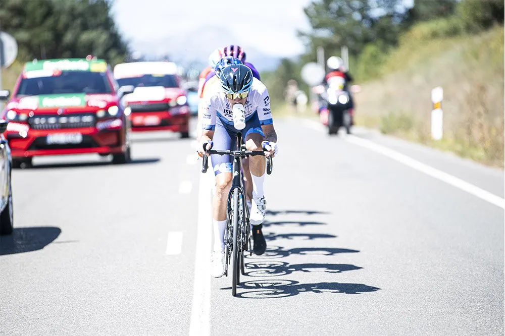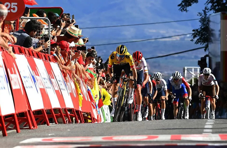 Khi còn 20km, tận dung con đèo Puerto de Herrera, những đợt tấn công nổ ra liên tục từ các đội mạnh như Quick-Step Alpha Vinyl, Bora–Hansgrohe, Ineos Grenadiers… nhằm phá thế xiềng xích của Jumbo-Visma. Điều này khiến đoàn đua bị xé dài ra nhưng sau khi đổ xuống thì đã dính lại.