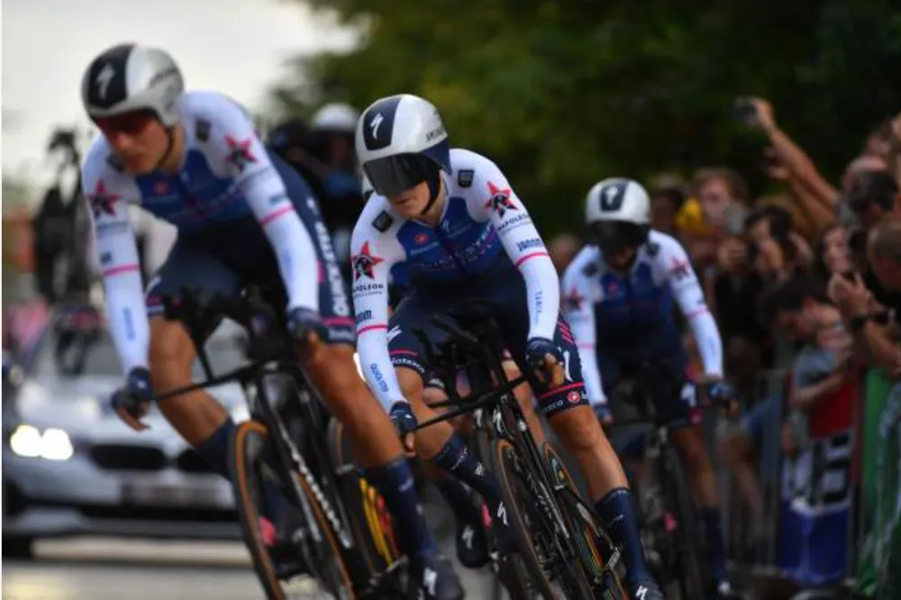 Quick-Step Alpha Vinyl cũng cạnh tranh khốc liệt trong màn “chạy đua với thời gian” này và thành tích của họ chỉ kém Ineos Grenadiers vỏn vẹn 1 giây.