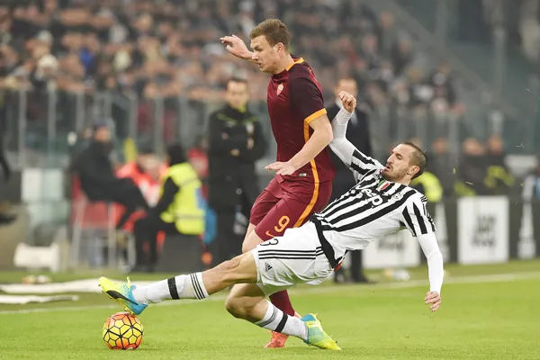 Trung vệ Chiellini (Juventus) sẽ trở lại đội hình để kèm chặt Edin Dzeko (Roma)