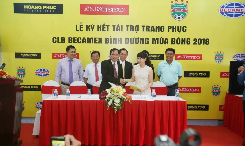Sáng 13-3, Công ty Hoàng Phúc quốc tế chính thức công bố gói tài trợ từ thương hiệu Kappa của Italia lên đến 3,6 tỷ đồng cho CLB Becamex Bình Dương ngay tại đại bản doanh của đội bóng giàu truyền thống này ở Thủ Dầu Một.