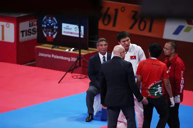 Minh Phụng được các bác sĩ chăm sóc khi dính đòn của Sajad. Ảnh: DŨNG PHƯƠNG