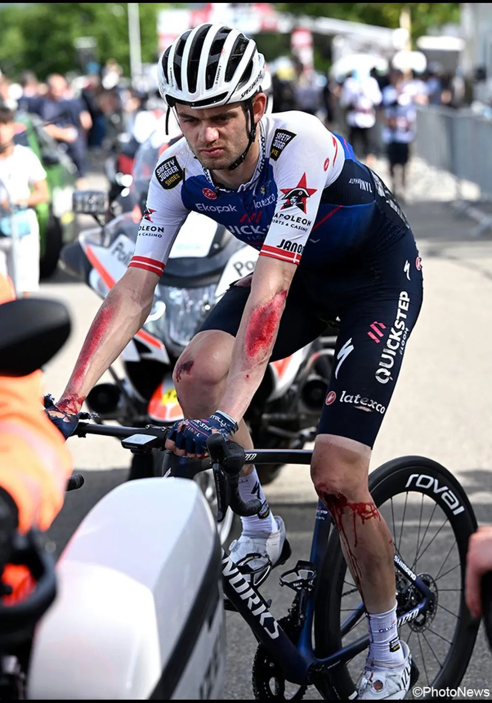 Hình ảnh được chia sẻ trên mạng xã hội của đội Quick-Step Alpha Vinyl cũng cho thấy Kasper Asgreen đã phải chịu rất nhiều đau đớn vì chấn thương khá sâu ở hai cánh tay, đầu gối phải khâu lại và xây xát toàn thân.