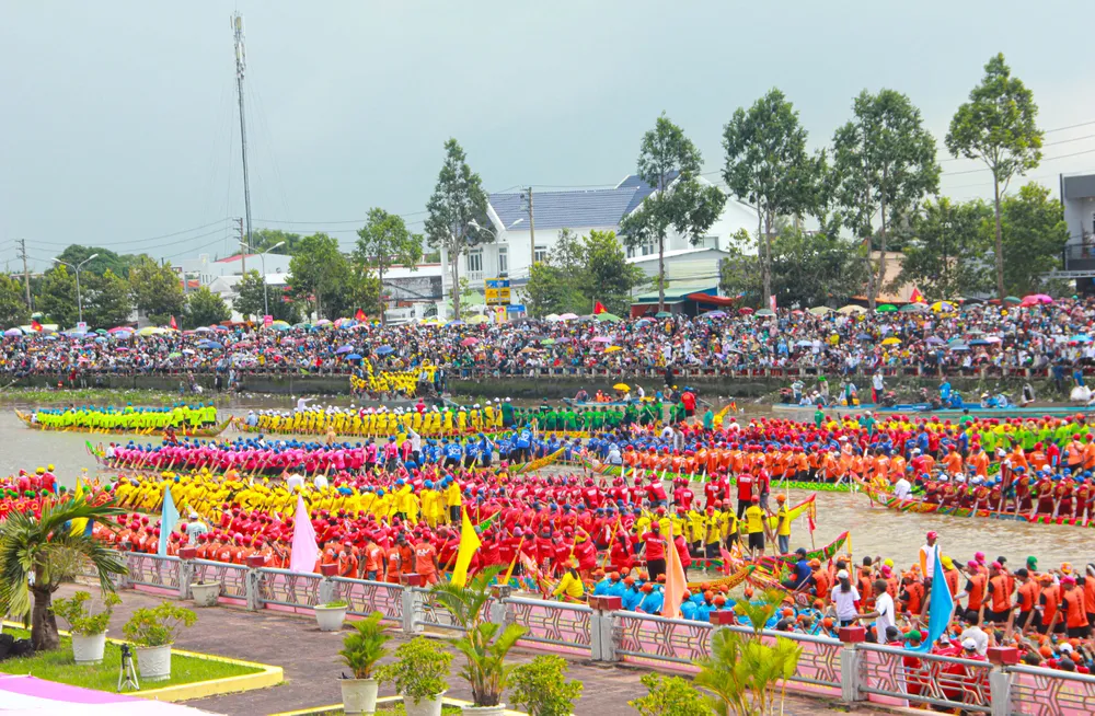 Đông đảo người hâm mộ và du khách quan tâm theo dõi giải đua ghe ngo Giải đua ghe ngo Sóc Trăng, khu vực ĐBSCL, lần thứ V, năm 2022 có tổng cộng 54 đội ghe tham gia tranh tài (trong đó có 9 đội nữ) đến từ 7 tỉnh khu vực ĐBSCL như: Kiên Giang, Vĩnh Long, Hậu Giang, Trà Vinh, Bạc Liêu, Cà Mau và chủ nhà Sóc Trăng.