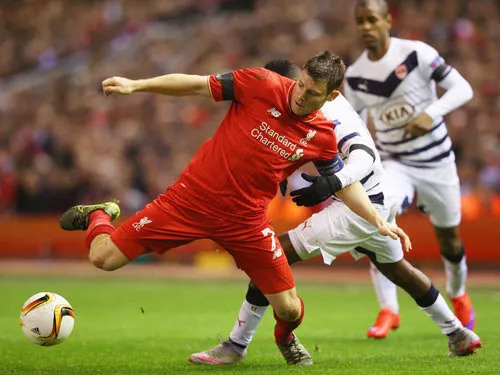 James Milner đi bóng trước hậu vệ Bordeaux
