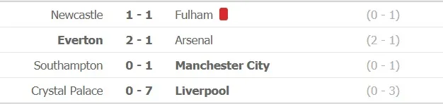 Chiến thắng 7 sao trước Crystal Palace giúp Liverpool gia tăng khoảng cách lên 5 điểm ở ngôi đầu bảng. Everton chiếm vị trí thứ 2 sau chiến thắng Arsenal 2-1 trên sân nhà, Man City cũng thắng sít sao 1-0 trên sân Southampton để vươn lên vị trí thứ 6.