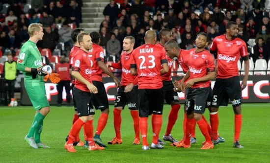 Các cầu thủ Guingamp ăn mừng thắng lợi.