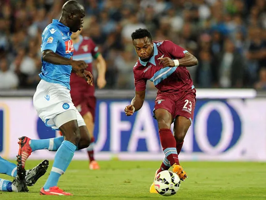 Ogenyi Onazi (phải) tung cú sút ghi bàn vào lưới Napoli, ấn định chiến thắng 4 - 2 cho Lazio. Ảnh: Sportinglife.