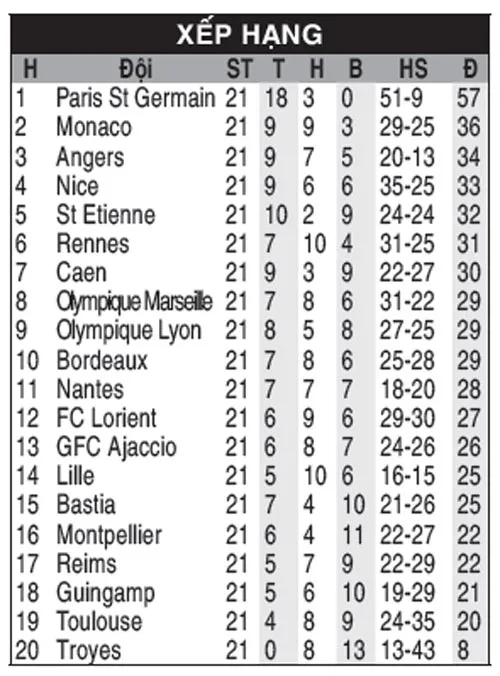 Lyon đã có lúc nhảy lên nhì bảng mùa này và tưởng chừng có thể giúp Ligue 1 thêm sống động trong cuộc bám đuổi Paris SG. Nhưng giờ họ thậm chí khó lòng cạnh tranh nổi suất dự Europa League mùa tới khi để Saint Etienne qua mặt để tạo khoảng cách 2 điểm ở ngôi thứ 5.