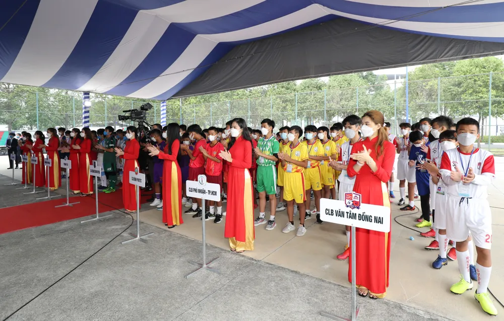 Phó Chủ tịch VFF Cao Văn Chóng cùng các quan chức tặng hoa, quà và bắt tay chào mừng các đội dự giải
