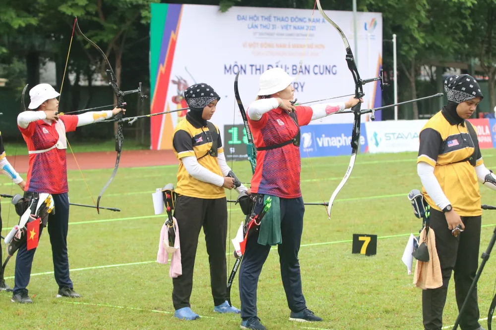 Hà Nội từ sớm lất phất những cơn mưa, nhưng cũng không thể ngăn được tình yêu của người dân Thủ đô dành cho bộ môn bắn cung. Sáng 15-5, môn thi này chính thức “chào” SEA Games 31 với vòng xếp hạng vòng toàn năng cung 1 dây cá nhân nam và cá nhân nữ. Trong đó, mọi sự chú ý được đổ dồn về Đỗ Thị Ánh Nguyệt - hoa khôi làng bắn cung Việt thi bắn cung 1 dây.
