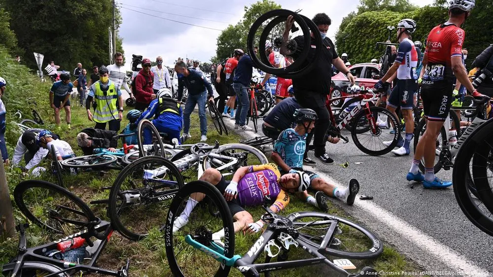 Người này đã đứng bên lề đường trong chặng 1 của Tour de France 2021 vào ngày 26-6 và cầm một tấm biển có dòng chữ 'Allez Opi-Omi'. Cô quay lưng về phía chiếc xe và tấm biển lấn vào đường xe chạy, khiến Tony Martin (Jumbo-Visma) va vào gây nên một vụ tai nạn dính chùm.