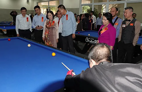 Lãnh đạo thành phố đi tham quan phòng tập mộn bi da