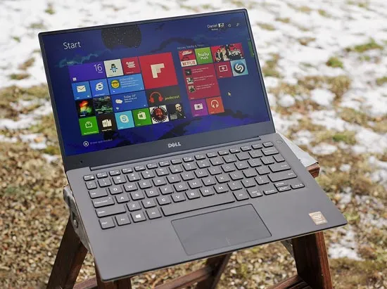 Máy sử dụng kết hợp chất liệu sợi carbon và hợp kim nhôm cao cấp cho phần khung máy nên dù mỏng nhẹ nhưng vẫn mang lại cảm giác chắc chắn, bền. So với các mẫu Ultrabook khác, Dell XPS 13 mỏng và nhẹ hơn hẳn vì chỉ nặng 1,26kg, thiết kế khung viền màn hình cực mỏng 5,2mm. Máy trang bị bộ xử lý Intel Core i7-5600U kiến trúc Broadwell, đồ họa tích hợp HD Graphics 5500, 8GB bộ nhớ DDR3L và ổ SSD dung lượng 512GB giao tiếp M.2. Sự kết hợp giữa cấu hình khủng cùng màn hình độ phân giải siêu nét (3.200x1.800 pixel) trên máy có thể xem là một lựa chọn phù hợp cho nhu cầu làm việc văn phòng, giải trí di động với phim ảnh độ phân giải cao hay giải trí với game đồ họa 3D. Tuy vậy, vì tối ưu cho ngoại hình mỏng nhẹ, Dell XPS 13 chỉ hỗ trợ cổng mini DP, đầu đọc thẻ và 2 cổng USB 3.0 hỗ trợ tính năng Powershare cho phép sạc thiết bị di động khác ngay cả khi máy đang tắt. Giá tham khảo: 35 triệu đồng.