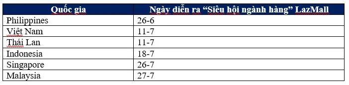 Lịch diễn ra ngày “Siêu hội ngành hàng” trên LazMall tại Đông Nam Á
