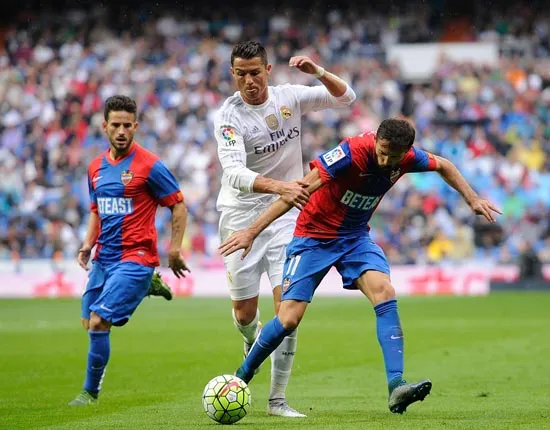 | Đội hình dự kiến Levante (4-4-2): Marino - Lerma, Ivan Lopez, Medjani, Tono - Verdu, Verza, Simao, Morales - Deyverson, Rossi. Real Madrid (4-3-3): Keylor Navas - Danilo, Pepe, Varane, Nacho - Kovacic, Kroos, Isco - James Rodriguez, Jese, Ronaldo. |