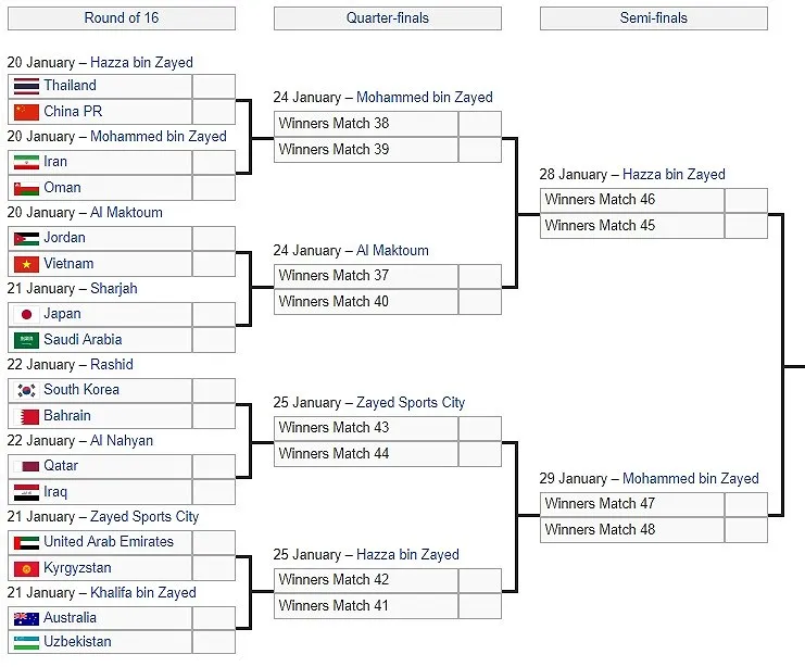 Lịch thi đấu bóng đá Asian Cup 2019, ngày 20-1 (Mới cập nhật)