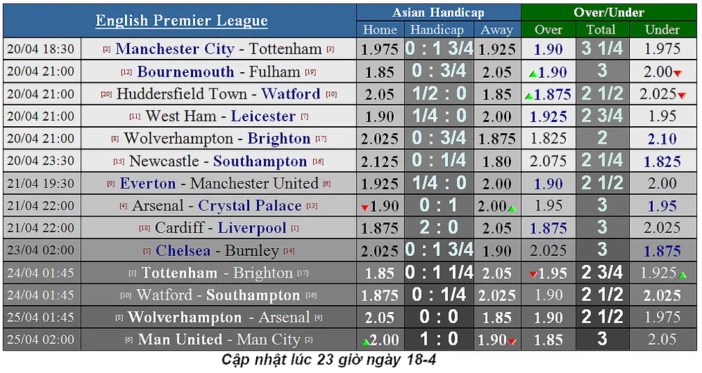 Lịch thi đấu Ngoại hạng Anh, vòng 35