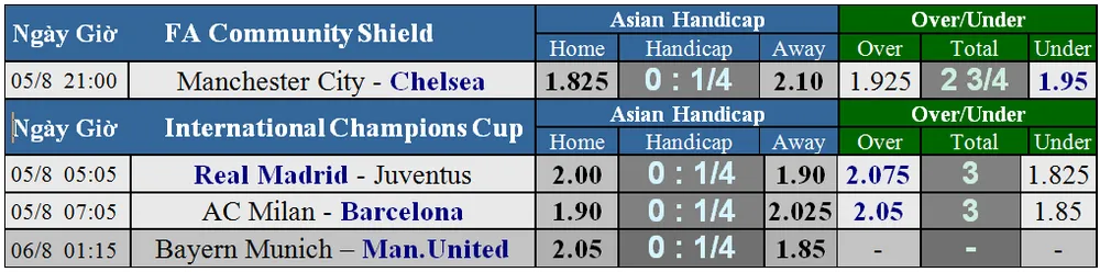 Lich thi đấu Community Shield: Manchester City - Chelsea