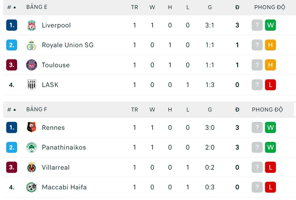 Đấu trường Europa League cũng trở nên sôi nổi ngay tuần này khi các đội đứng đầu các bảng đụng độ nhau để phân định ngôi thứ. Liverpool gặp Union Saint-Gilloise, trong lúc West Ham căng thẳng khi chơi trên sân Freiburg.