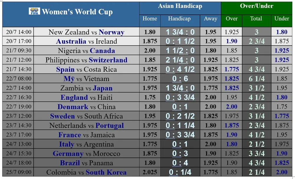 Trở lại với đội bóng của HLV Mai Đức Chung, tuần trước các hãng cược ra kèo tuyển Mỹ chấp tuyển Việt Nam 5 trái rưỡi 6 trái (ăn 77 và thua 92), nhưng khi đến gần ngày khai mạc, mức chấp của tuyển Mỹ đã tăng lên thành 6 trái (ăn 77 và thua 97). Giới chuyên môn cho rằng với sự chênh lệch đẳng cấp giữa đôi bên, nếu tuyển Việt Nam để thua 5 hay 6 bàn đã là thành công lớn.