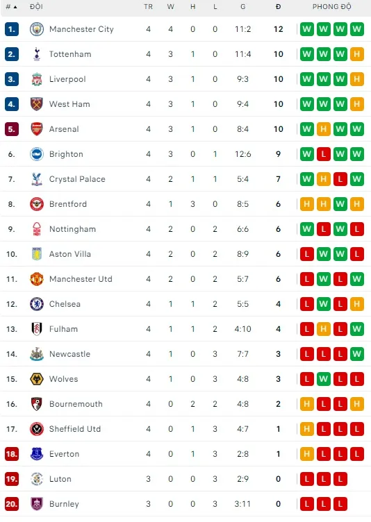 Khi West Ham nhiều khả năng níu chân Man City, bảng xếp hạng vòng 5 có thể sẽ có 5 đội cùng 13 điểm khi Liverpool thừa sức thắng đậm Wolves, Tottenham có thể đè bẹp Sheffield, còn Arsenal có thừa thực lực để thắng trên sân Everton.