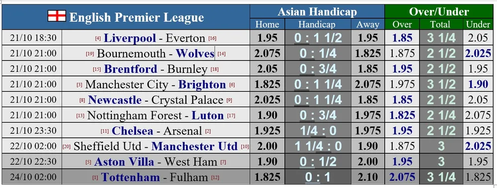 Tottenham tiếp Fulham trong trận đấu muộn của vòng 10 là một trận derby London dễ đoán, bởi Tottenham thường thắng Fulham ở Premier League. Nhưng ở ngôi đầu bảng, lần đầu tiên trong nhiều năm, Gà trống phải nếm trải áp lực buộc phải thắng và có lẽ sức ép đó sẽ níu chân Son Heung-min và James Maddison. Fulham có lẽ không phải là đối thủ của Tottenham nhưng họ đang là đội chơi sân khách rất hay mùa này. Họ chỉ thua đúng 1 trong 4 trận sân khách mùa này và đó là trận thua trên sân Man City. Còn lại, họ thắng trên sân Goodison Park và cầm hòa ở Selhurst Park lẫn Emirates. Đúng, Fulham đã cầm hòa 2-2 ngay trên sân Arsenal, biết đâu chừng họ có thể cầm hòa ở Tottenham Stadium.