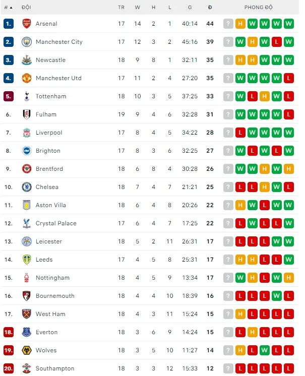 Manchester City đang bám theo đội đầu bảng Arsenal với cách biệt 5 điểm sau 17 vòng đấu. Thực tế khoảng cách giữa 2 đội đầu bảng trong ngày đầu năm mới là 7 điểm, nhưng Arsenal đã bất ngờ mất điểm khi bị cầm hòa trên sân Newcastle, và Man City nhờ vậy đã thu ngắn khoảng cách khi thắng 1-0 trên sân Chelsea.